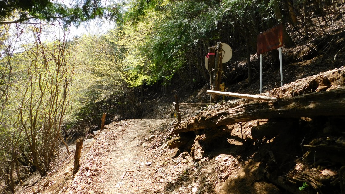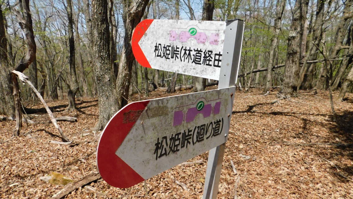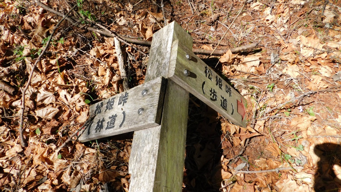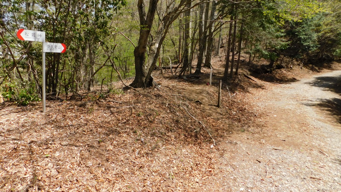 〔 46/97 〕 表示板確認。「 ← 松姫峠(林道)」へ。合流地点にて。