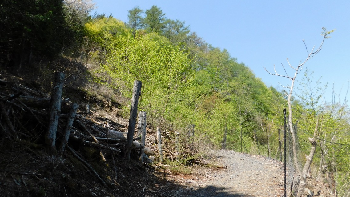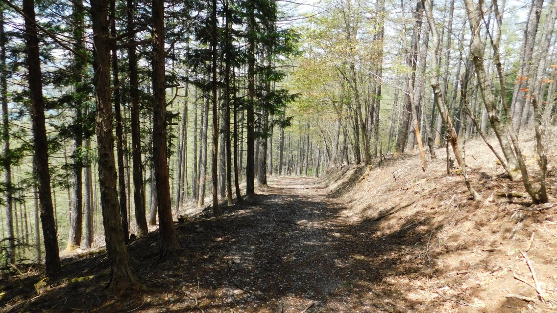 〔 14/97 〕 上の林道へ出る。林道を横断して、前方の登山道へ入る。