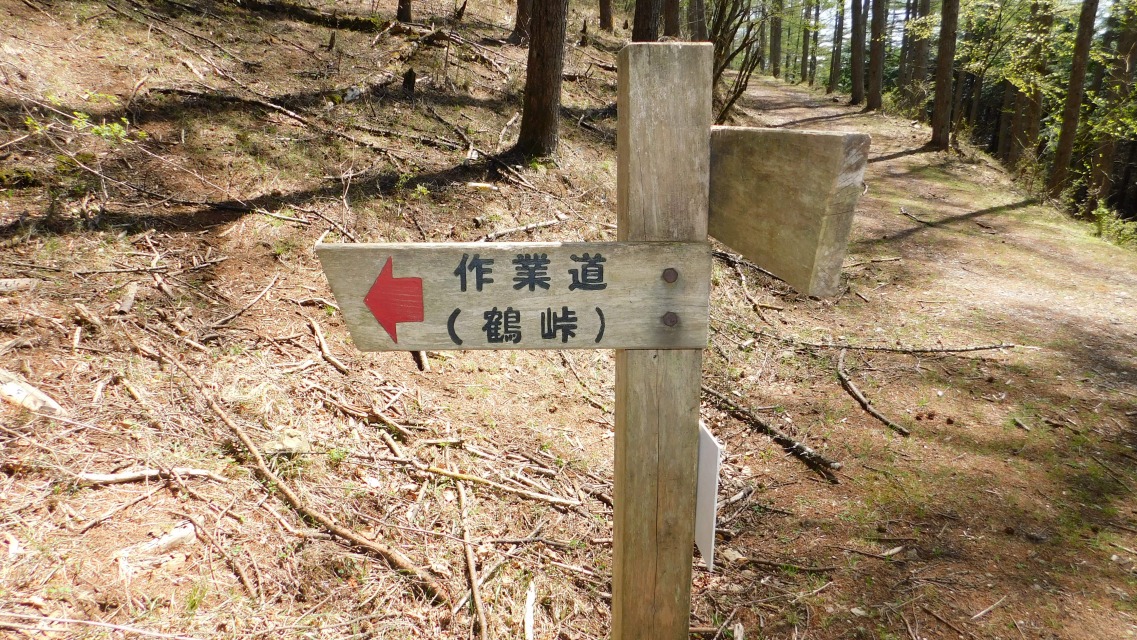 〔 40/97 〕 分岐点。林道を直進する。右は「作業道(鶴峠)」。