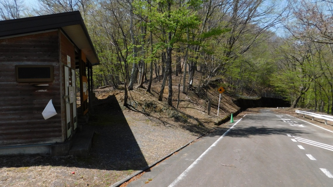 〔 53/97 〕 小菅村へ入る。前方の建物はトイレ。