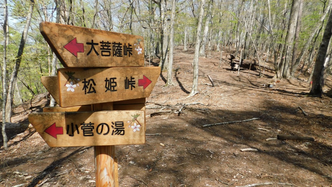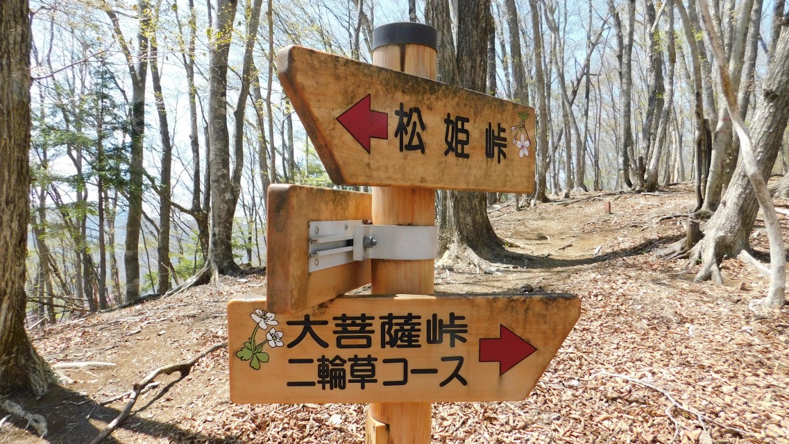 〔 58/97 〕 分岐点。右は「大菩薩峠/二輪草コース → 」