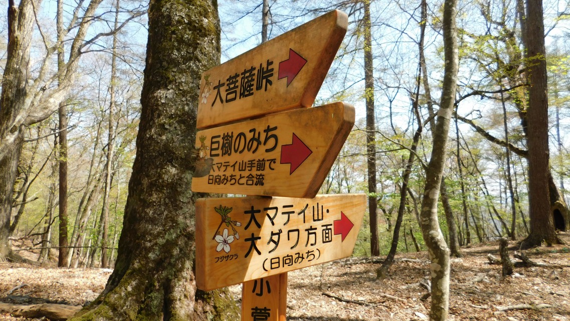 〔 69/97 〕 確認。「巨樹のみち/大マテイ山手前で日向みちと合流 → 」へ。