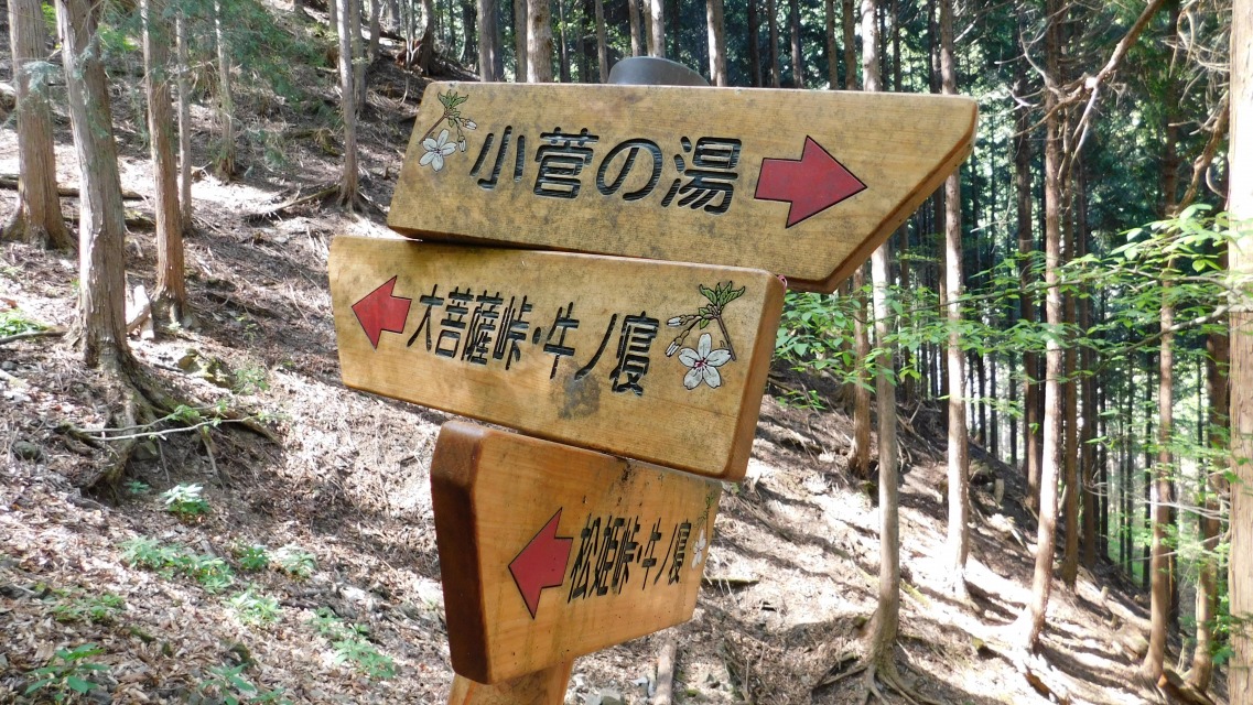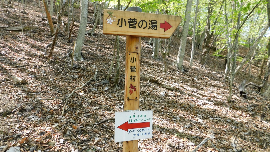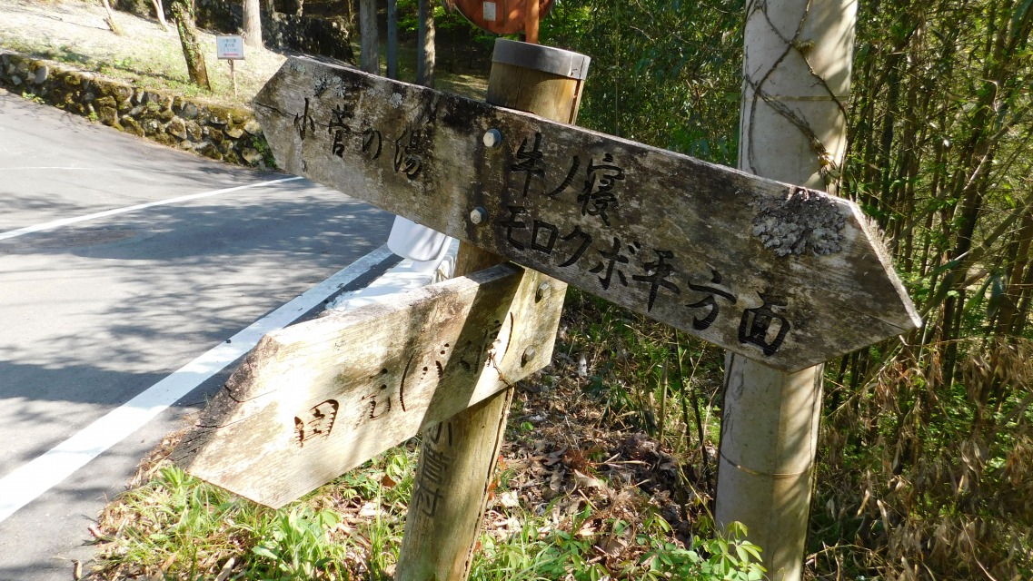 〔 86/97 〕 方角表示板を通過する。「 ← 小菅の湯」へ。