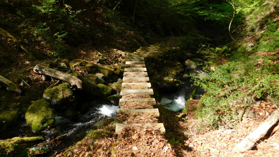 〔 85/97 〕 わさび田と思われる。橋の上から後ろを振り返って。
