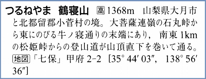 〔 65/97 〕 「鶴寝山 標高 1,368m」標柱。「鶴寝山」参照。